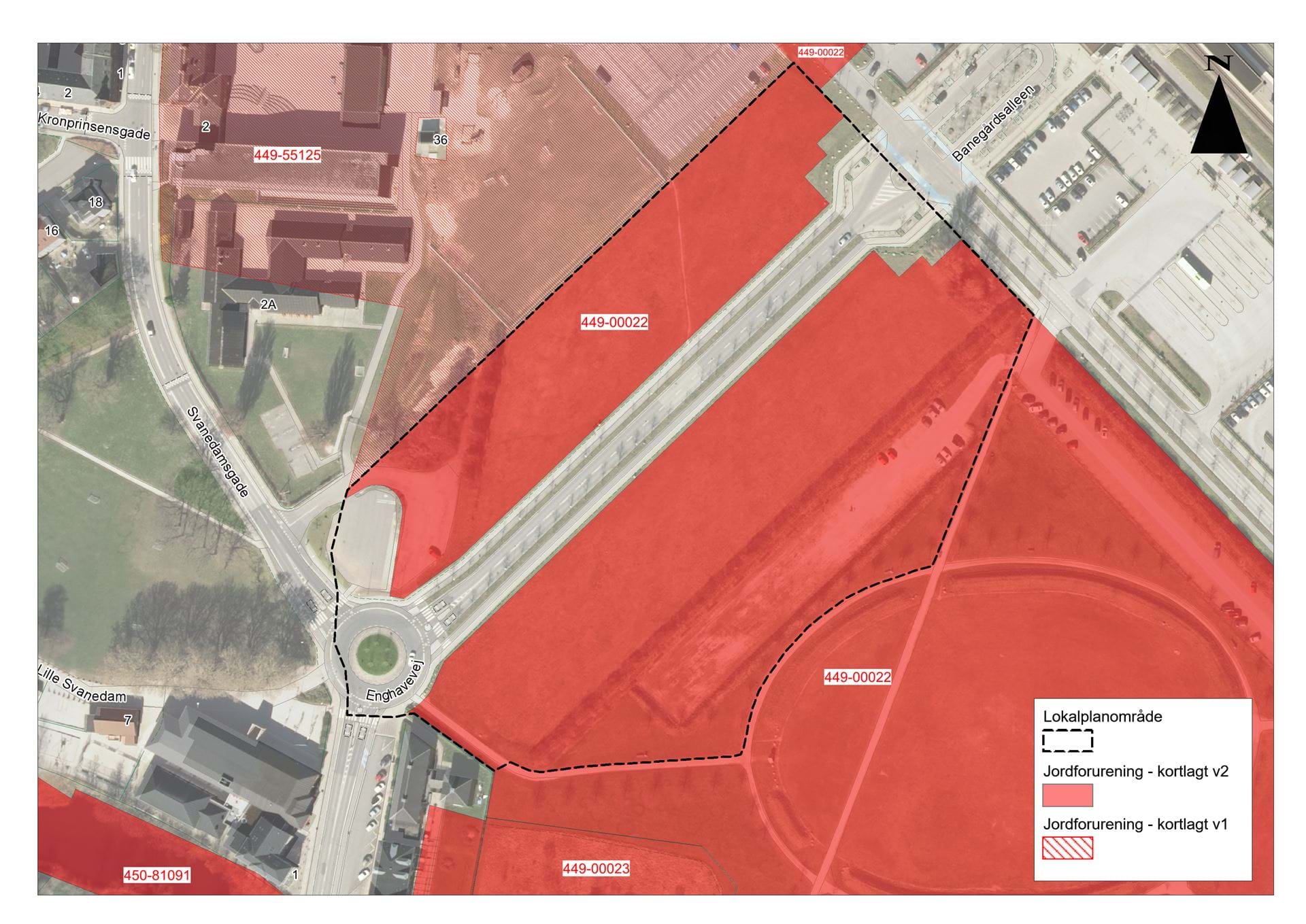 Indenfor lokalplanområdet er der en række lokaliteter, der er kortlagt på vidensniveau 2 efter jordforureningsloven. Et areal betegnes som kortlagt på vidensniveau 2, hvis der er tilvejebragt et dokumentationsgrundlag, der gør, at det med høj grad af sikkerhed kan lægges til grund, at der på arealet er en jordforurening af en sådan art og koncentration, at forureningen kan have skadelig virkning på mennesker og miljø. Hvis man ønsker at bygge og/eller grave på en kortlagt ejendom, skal man søge Nyborg Kommune om tilladelse til projektet. Tilladelsen gives efter §8 i Lov om forurenet jord, og kræves, hvis arealet skal ændres til følsom anvendelse, herunder bolig, børneinstitution og alment tilgængelige arealer.