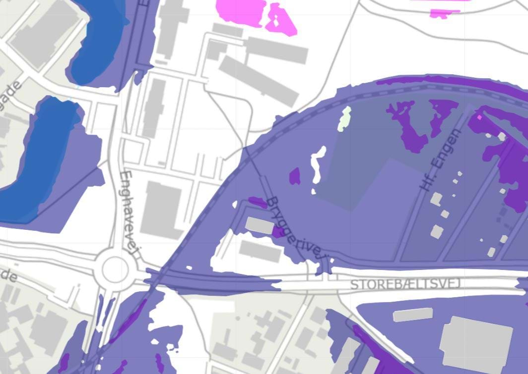En del af lokalplanområdet er udpeget som oversvømmelsestruet ved stormflodshændelser i kote +2,5 meter, hvilket svarer til en 100 årshændelse i 2115.