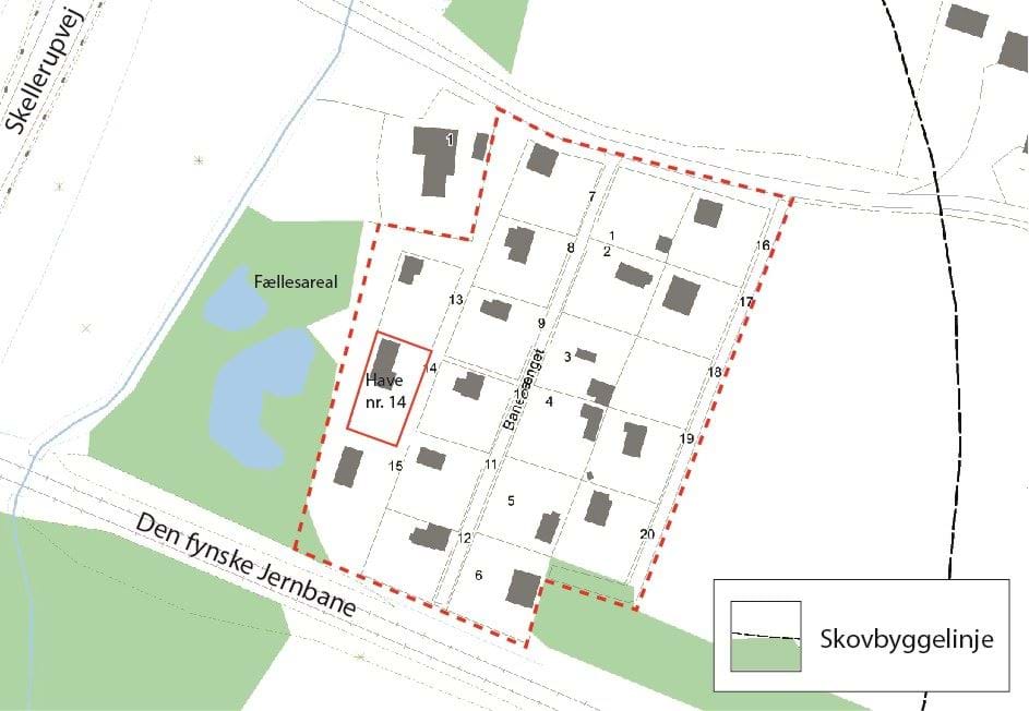 Se Bilag 2 for haver, havens afgrænsning og nærmere placering af sti, vej- og parkeringsforhold.