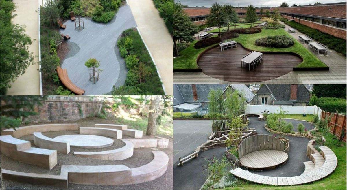 Figur: Sådan kan fri- og opholdsarealerne tænkes indrettet. Referencebilleder.