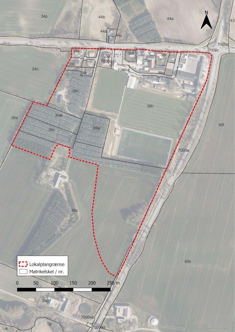 Kortbilag 1 viser lokalplanens afgrænsning samt hvilke matrikler den omfatter