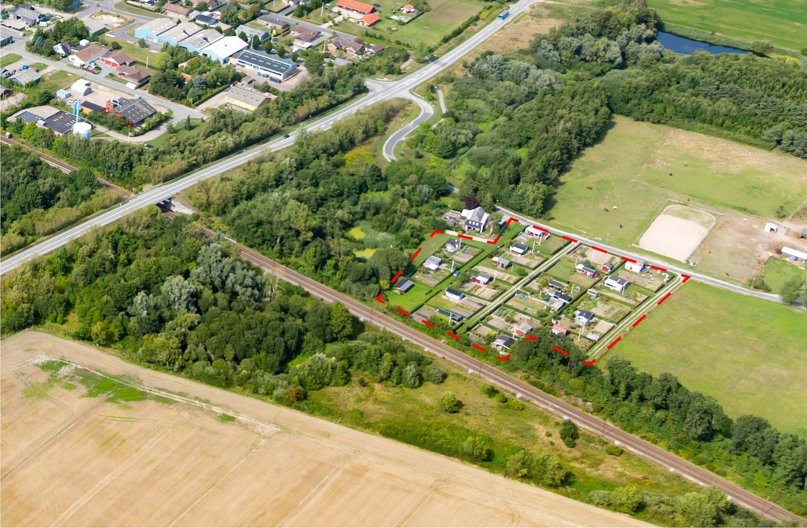 Luftfoto taget i 2019 af Hf. Kaliffenlund i Ullerslevs vestlige udkant tæt på jernbanen