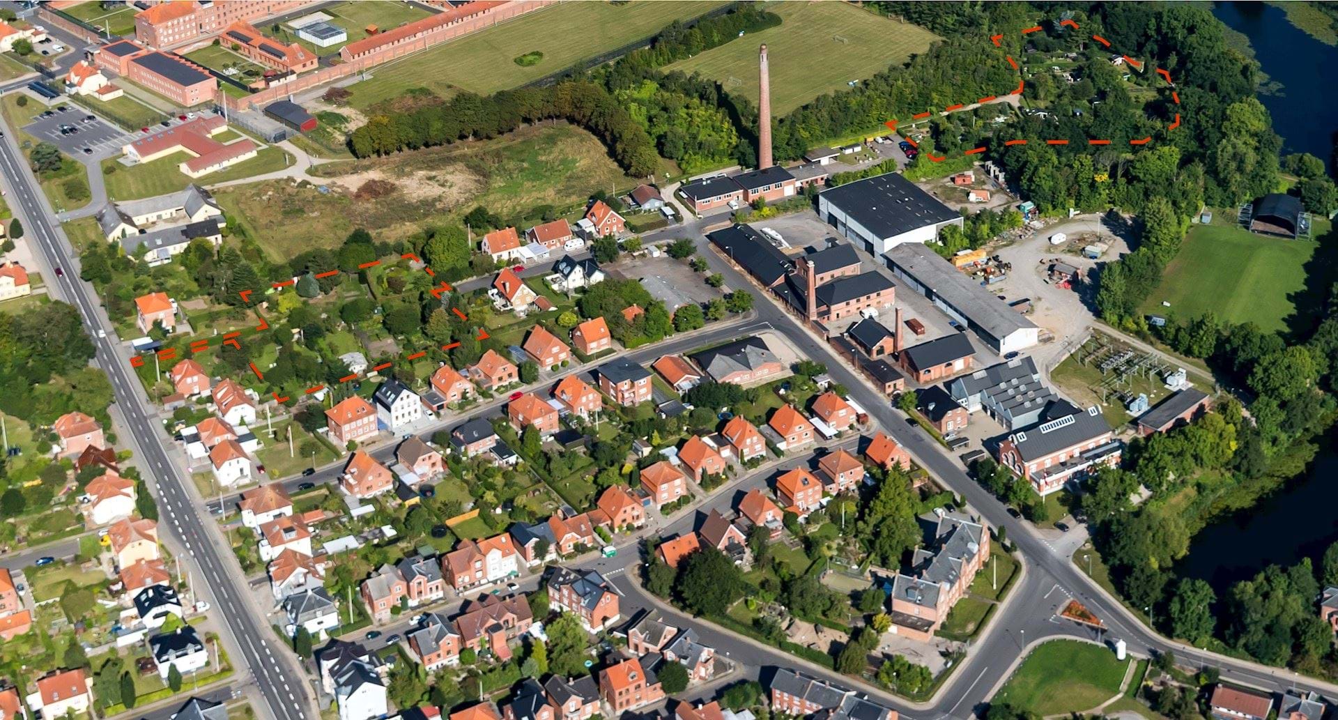 Luftfoto taget i 2016. Til venstre Hf. Carlsminde mod Vindingevej og til højre Hf. Vesterled ved Ladegårdssøen i Nyborg.