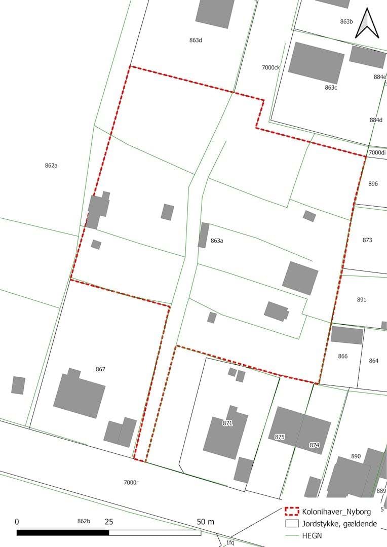 Se Bilag 2 for haver, havens afgrænsning og nærmere placering af sti, vej- og parkeringsforhold.