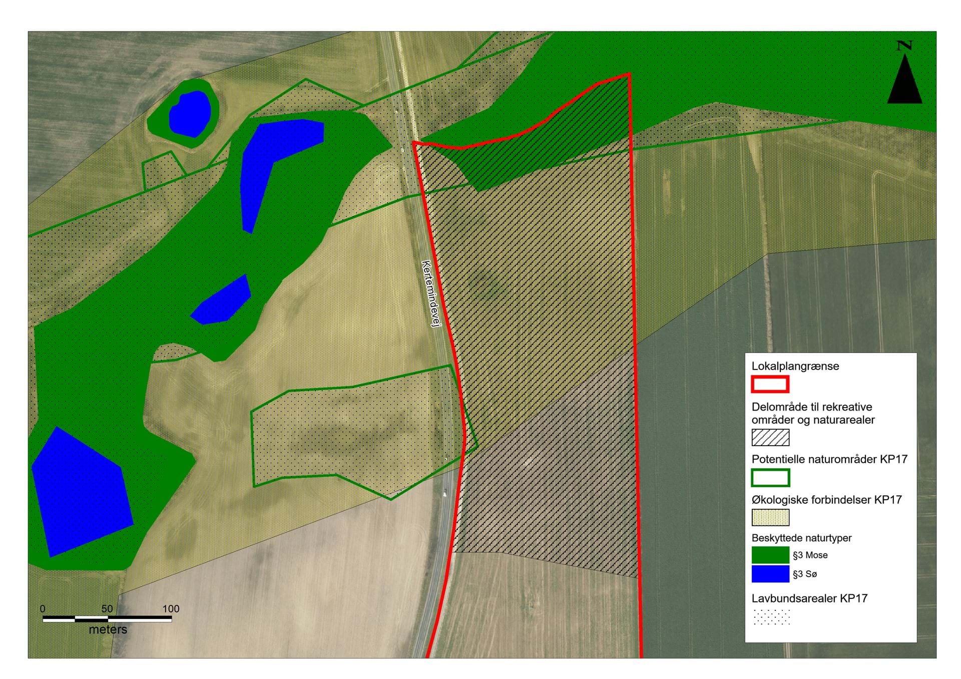 Den nordlige del af planområdet er i Kommuneplan 2017 udpeget som en økologisk forbindelse samt afgrænset potentielle naturområder. Disse områder berøres ikke af lokalplanens planlagte bebyggelse, da de udlægges til rekreative områder og naturarealer. Nyborg Kommune har i foråret 2020 offentliggjort et forslag til kommuneplantillæg nr. 11.1 for Grønt Danmarkskort - Nyborg Kommune. Ved vedtagelsen af planen begrænses udstrækningen af udpegningen, så den stort set følger udpegningen af §3 områderne nord for planområdet. Dermed vil der kun være et mindre overlap med planområdet, der udlægger arealet til rekreative områder og naturarealer, hvorfor der ikke forventes en negativ påvirkning af udpegningerne.