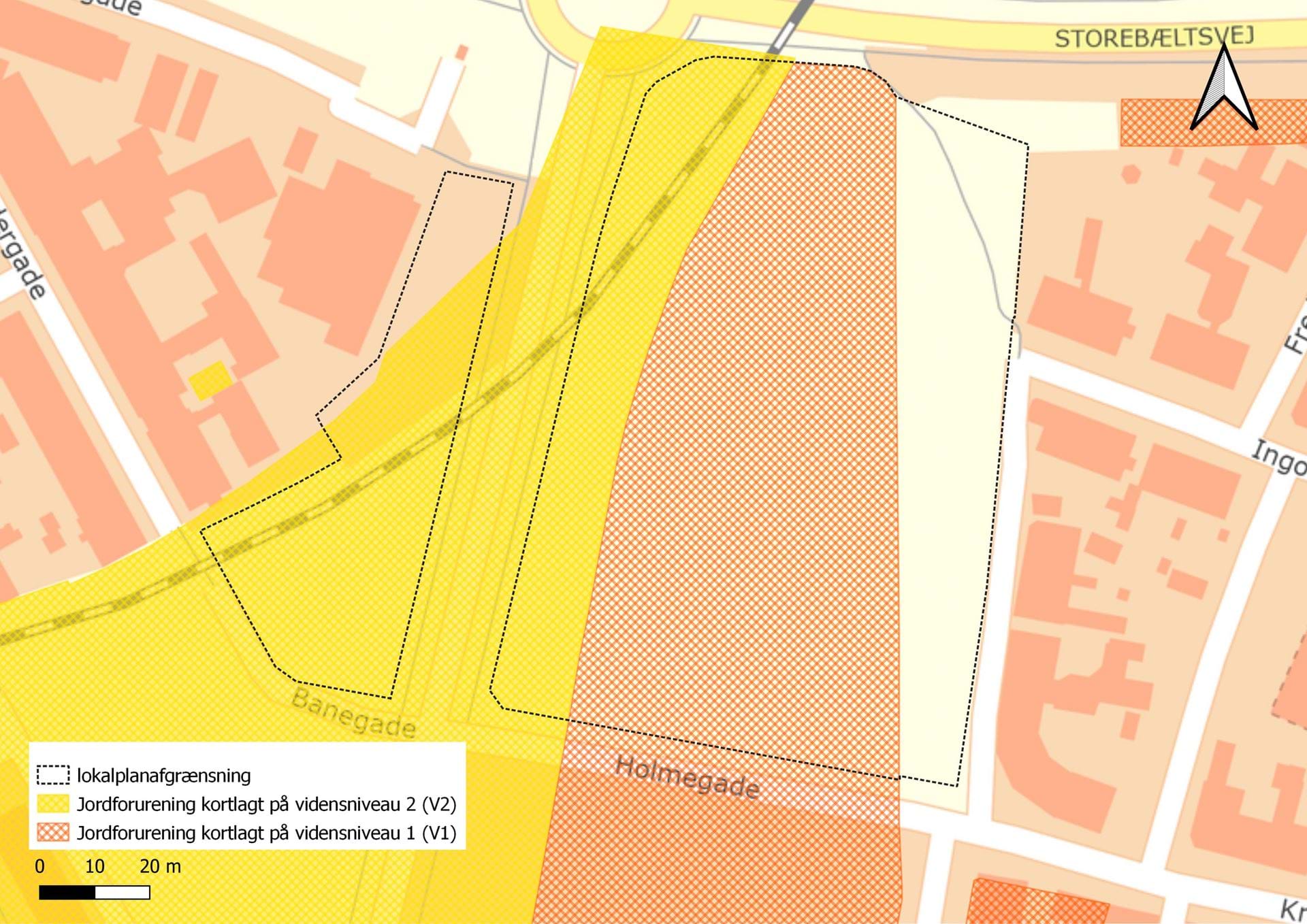 Indenfor lokalplanområdet er der en række lokaliteter, der er kortlagt på vidensniveau 2 efter jordforureningsloven. Et areal betegnes som kortlagt på vidensniveau 2, hvis der er tilvejebragt et dokumentationsgrundlag, der gør, at det med høj grad af sikkerhed kan lægges til grund, at der på arealet er en jordforurening af en sådan art og koncentration, at forureningen kan have skadelig virkning på mennesker og miljø.