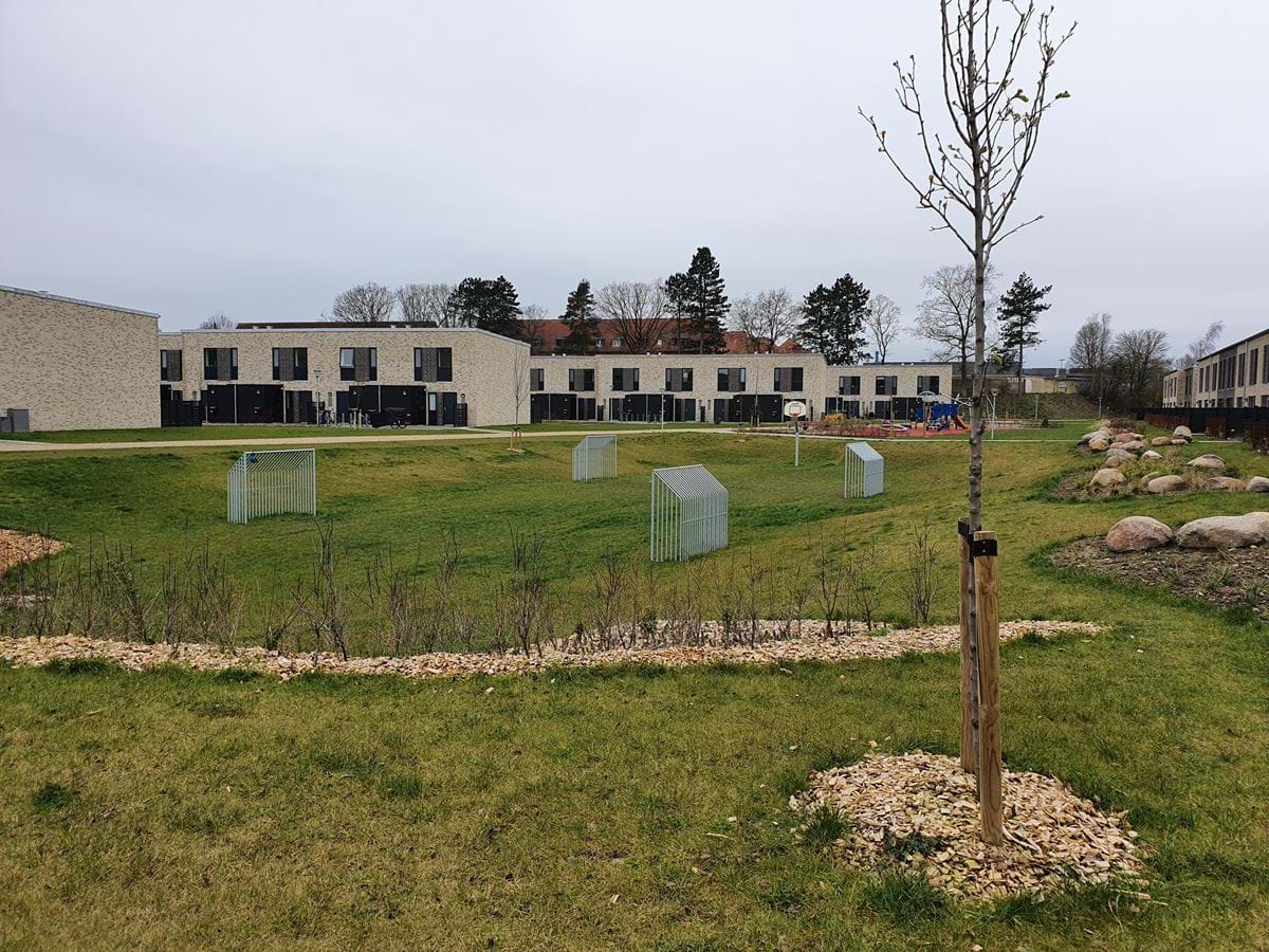Figur 4: Eksempel på areal til opsamling af regnvand i forbindelse med større regnmængder, der det meste af året kan bruges som fodboldbane. Østerbro, Odense.